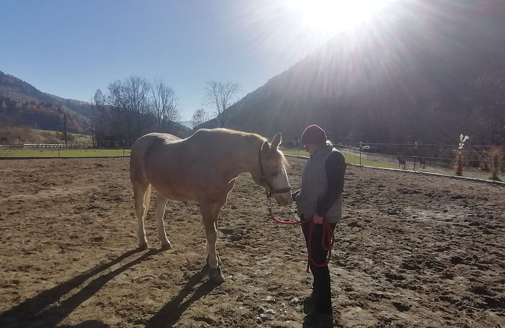Es versteht sich von selbst, dass Sunny nur an den allerbesten Platz abgegeben werden konnte, denn er war schon damals ein ausgesprochen menschenfreundliches, aufgeschlossenes, fleißiges und wunderschönes Pferd mit viel Potential, das Freude an der Arbeit hatte und daran, dem Menschen zu gefallen. Diese Anforderungen erfüllten Silke und ihr Mann Franz zu 100 Prozent. Sunny übersiedelte also 2002 auf den Hof des Paares.